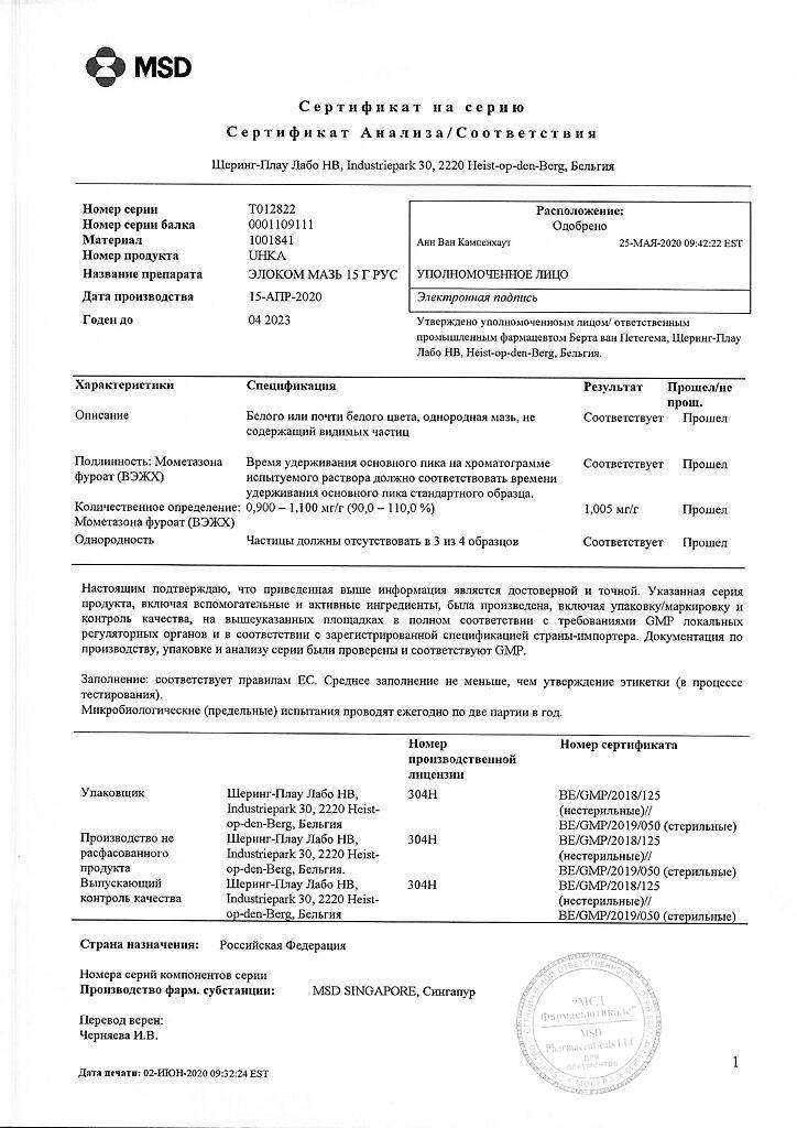 Пропиленгликоль, входящий в состав препарата, может вызывать раздражение в месте нанесения. В таких случаях следует прекратить применение Элокома и назначить соответствующее лечение.