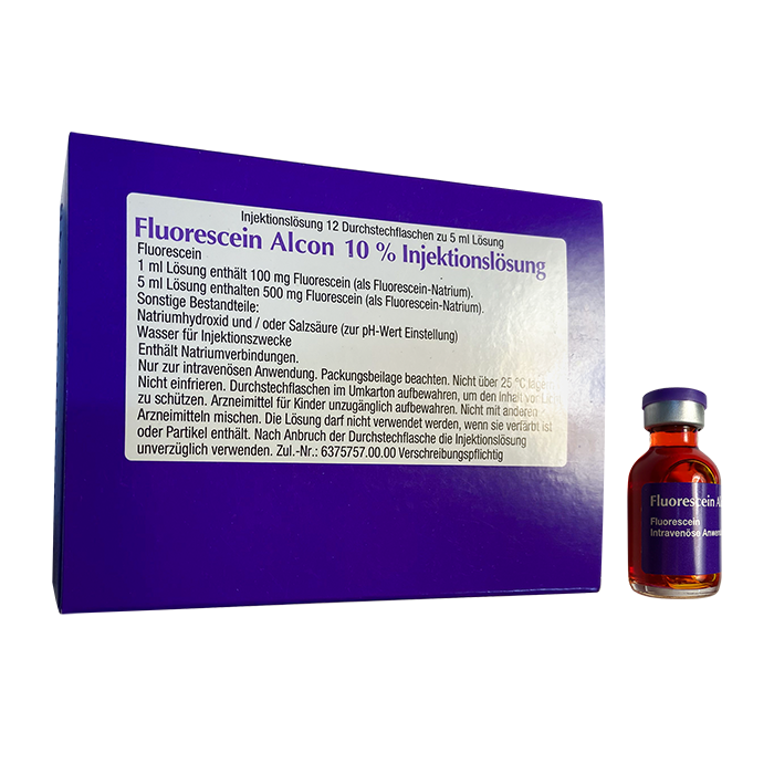 Флюоресцит (Fluorescein) - средство для флуоресцентной ангиографии и ангиоскопии в офтальмологии. При попадании в сосудистую сетку глаза активный компонент препарата – флюоресцеин стимулируется голубым светом, что позволяет отграничить область васкуляризации от окружающих тканей для улучшения визуализации.
