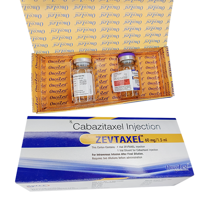 Zevtaxel выпускается как препарат для приготовления инфузии. В упаковке находится один флакон с концентратом кабазитаксела, а также отдельный флакон с растворителем, необходимым для первоначального этапа разведения.
