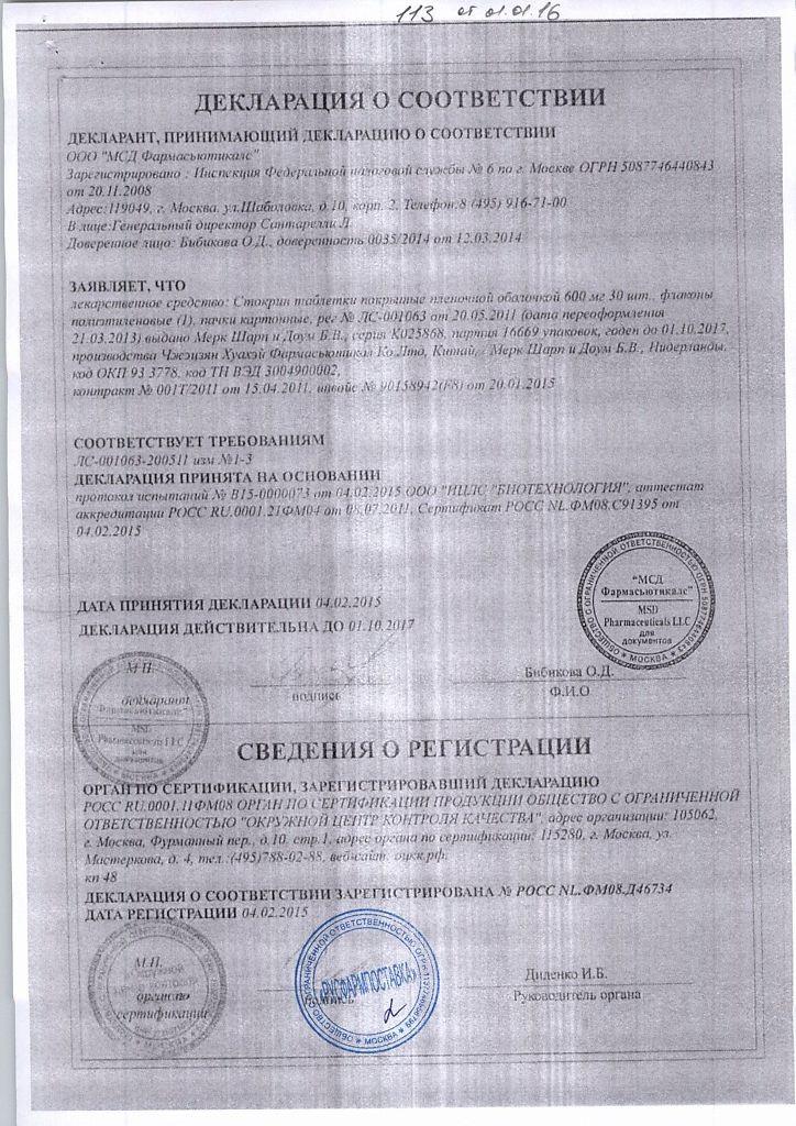 Применение. Рекомендованный режим дозирования данного препарата для взрослых: 1 таблетка в дозировке 600 мг, 1 раз в сутки, в одно и то же время дня. Детские дозировки таблеток Стокрин рассчитываются в зависимости от массы тела пациента.