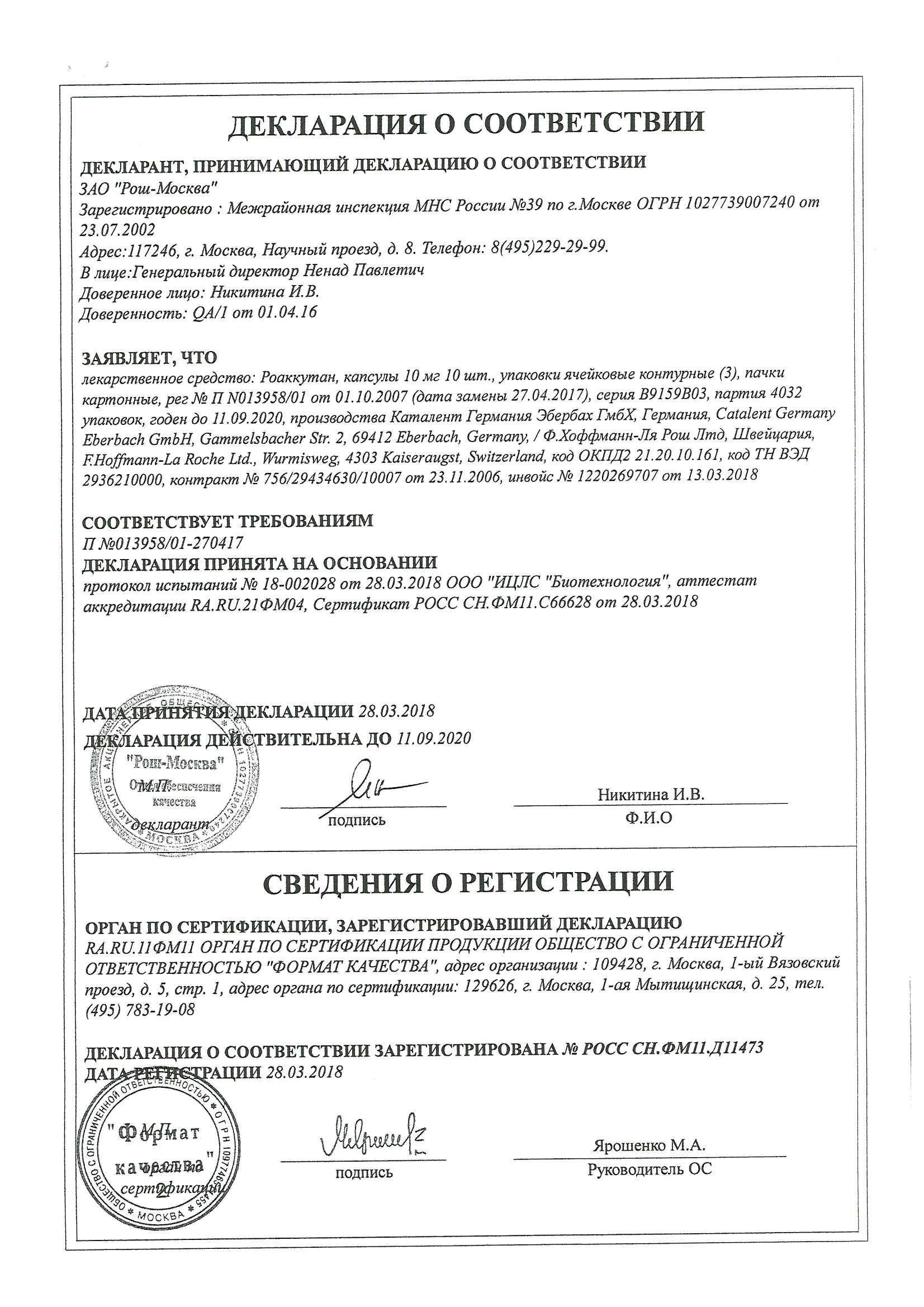 Сертификаты Роаккутан